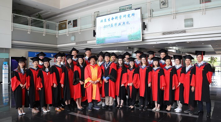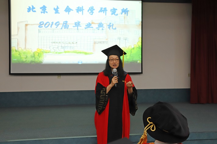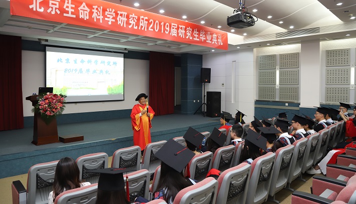 /北京生命科学研究所举行2019届研究生毕业典礼。王晓东所长、研究生院汤楠院长,教师代表刘清华老师和2019届的毕业生及家人朋友们参加典礼。