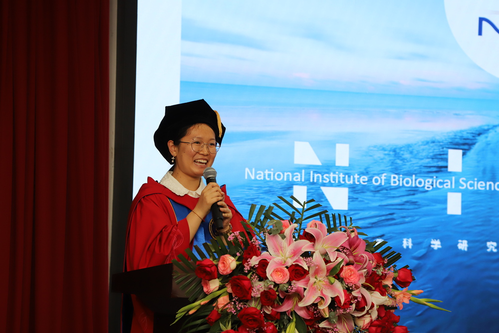 毕业生代表周瑞同学在典礼上发言,表达了对研究所老师们、同学们及全所工作人员们的感激之情,阐述了自己在NIBS几年的科研经历、感悟和收获。同时祝NIBS和全体毕业生同学越来越好!