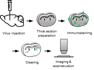 图四 稀疏标记策略与组织透明结合,实现中间神经元重构