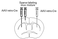 该系统的设计有两个优点:1)由于标记的触发依赖于Cre,通过将该稀疏标记系统与Cre转基因小鼠联用,能够实现细胞类型特异性的稀疏标记;2)通过调整控制子和放大子的混合比例,能够控制标记的稀疏程度。