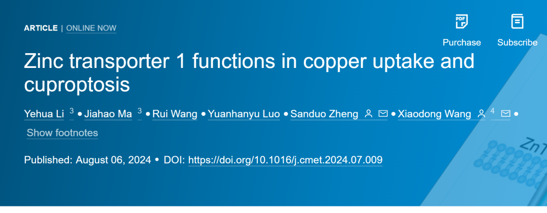 /北京生命科学研究所的王晓东实验室与郑三多实验室合作,在《Cell Metabolism》上发表题为“Zinc transporter 1 functions in copper uptake and cuproptosis” 的研究论文。该项研究首次发现并证明了Zinc transporter (ZnT1)作为新型的铜离子转运蛋白,介导铜离子进入细胞并诱发铜死亡,并阐述了ZnT1 在肠上皮细胞中通过介导铜离子吸收,维持肠上皮Lgr5阳性干细胞稳态。该研究还为临床上用锌离子治疗铜过量引起的威尔逊氏疾病,提供了理论依据。