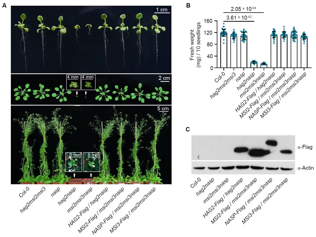 图1 HAG2-MSI2/3和NASP协同调节拟南芥的生长发育