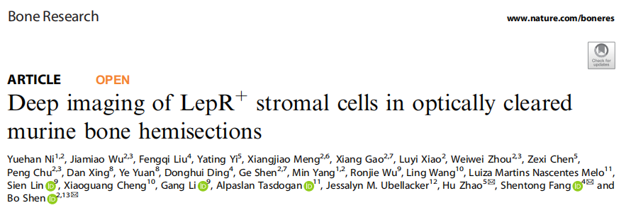 /北京生命科学研究所沈博实验室与中国药科大学方慎彤实验室及北京脑科学与类脑研究中心赵瑚实验室合作,在《Bone Research》杂志发表了题为 “Deep imaging of LepR+ stromal cells in optically cleared murine bone hemisections" 的研究论文。该研究开发了一种高效便捷的组织透明化和三维成像技术,尤其适用于骨髓微环境的深层成像。